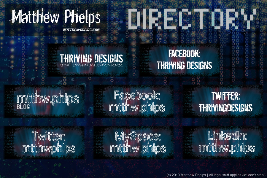 mtthw.phlps on LinkedIn mtthw.phlps on MySpace mtthw.phlps on Twitter mtthw.phlps on Facebook Thriving Designs on Twitter Thriving Designs on Facebook Thriving Designs